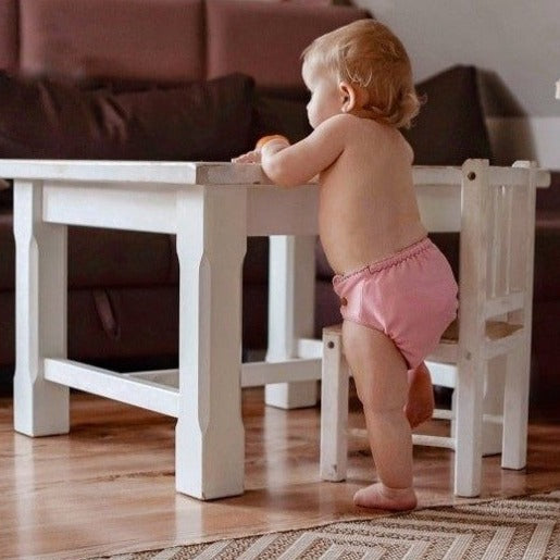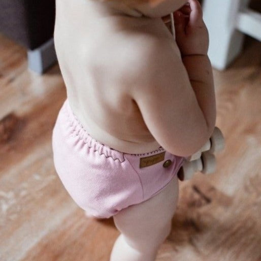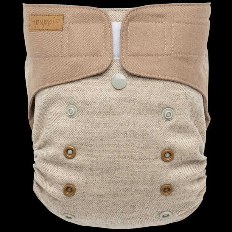 Puppi AI2 nappy shells are made of two layers of extremely soft and thin merino wool flannel. Colorful snaps and decorative stitching make it a conversation piece. The leg elastics are soft yet very stretchy, which allows for a trim fit on virtually every child. Once lanolised, these covers hold moisture very effectively. Wool is an extremely versatile fabric for cloth diapering-- it is breathable, temperature regulating (perfect for both cold and hot days), soft, and naturally antibacterial. Lanolin breaks down urine into salts and water, so it does not need to be washed as often as PUL diapers. Simply hang to dry between uses. However, a special washing and re-lanolising procedure is necessary on wash day.